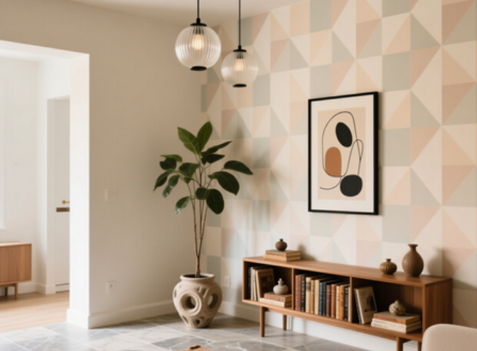 Гостиная — сердце квартиры, здесь можно позволить себе более смелые эксперименты. Акцентная стена за диваном или телевизором мгновенно меняет восприятие пространства. Снимите обои с одной стены и поклейте фотообои или материал под кирпич. Альтернатива — покрасить стену в контрастный цвет или использовать декоративную штукатурку из баллончика.